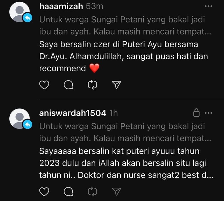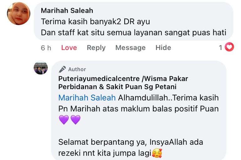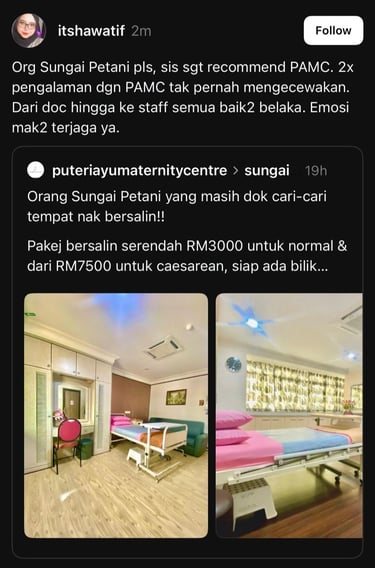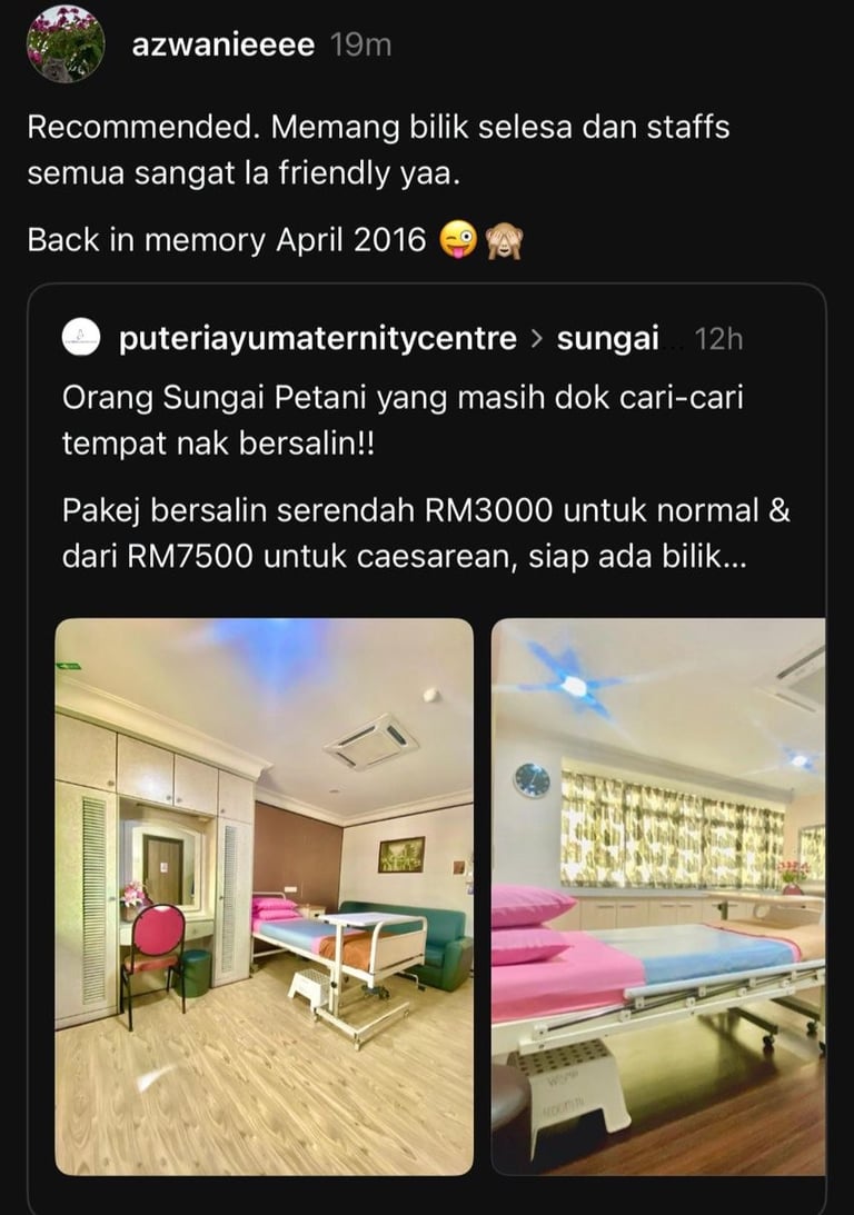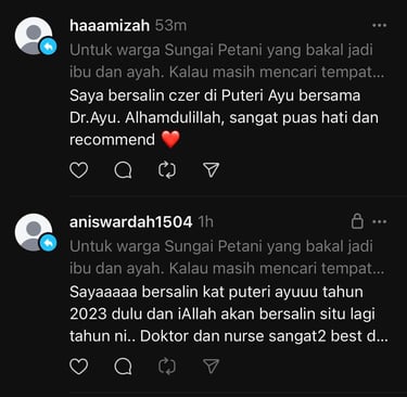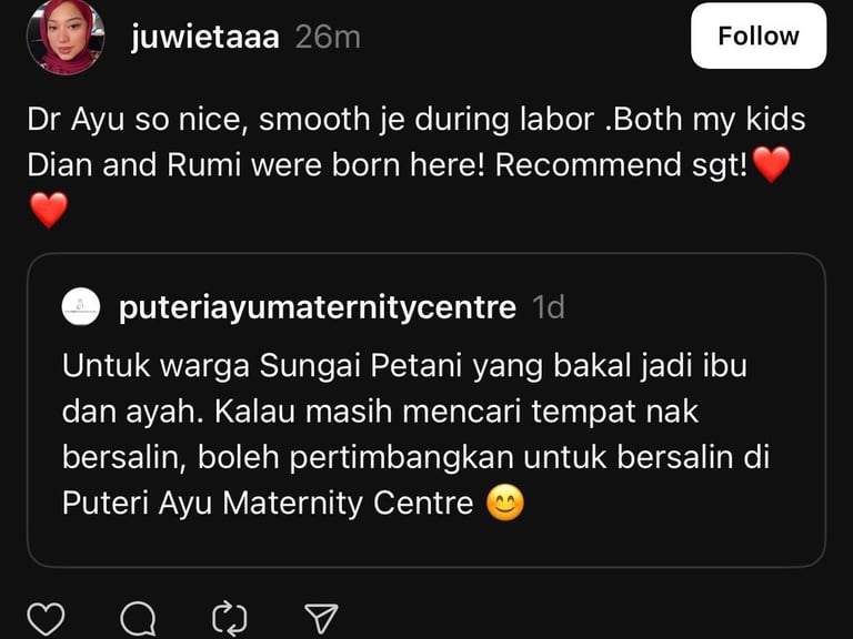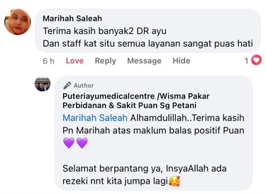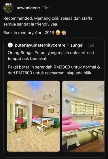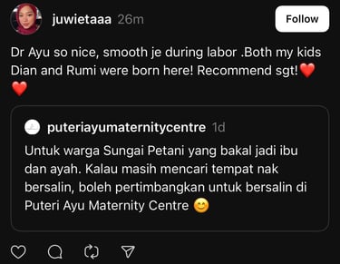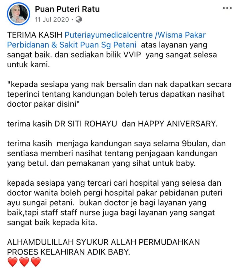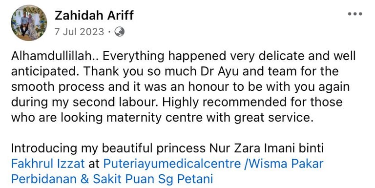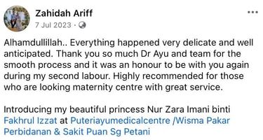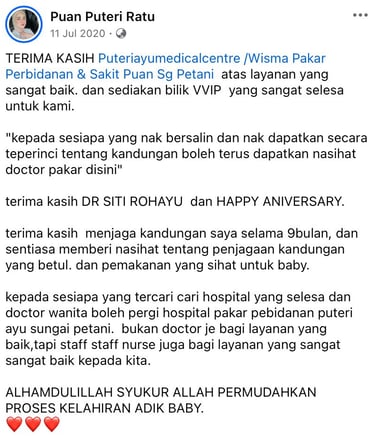 Sharing from Puan Siti Zaleha about her experience of giving birth at Puteri Ayu Maternity Centre
